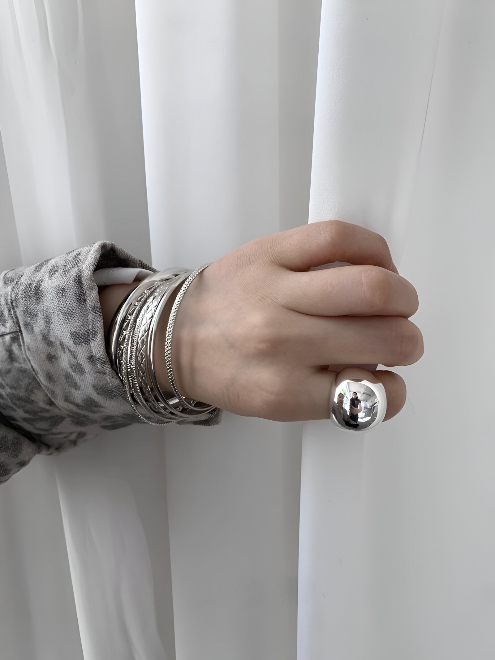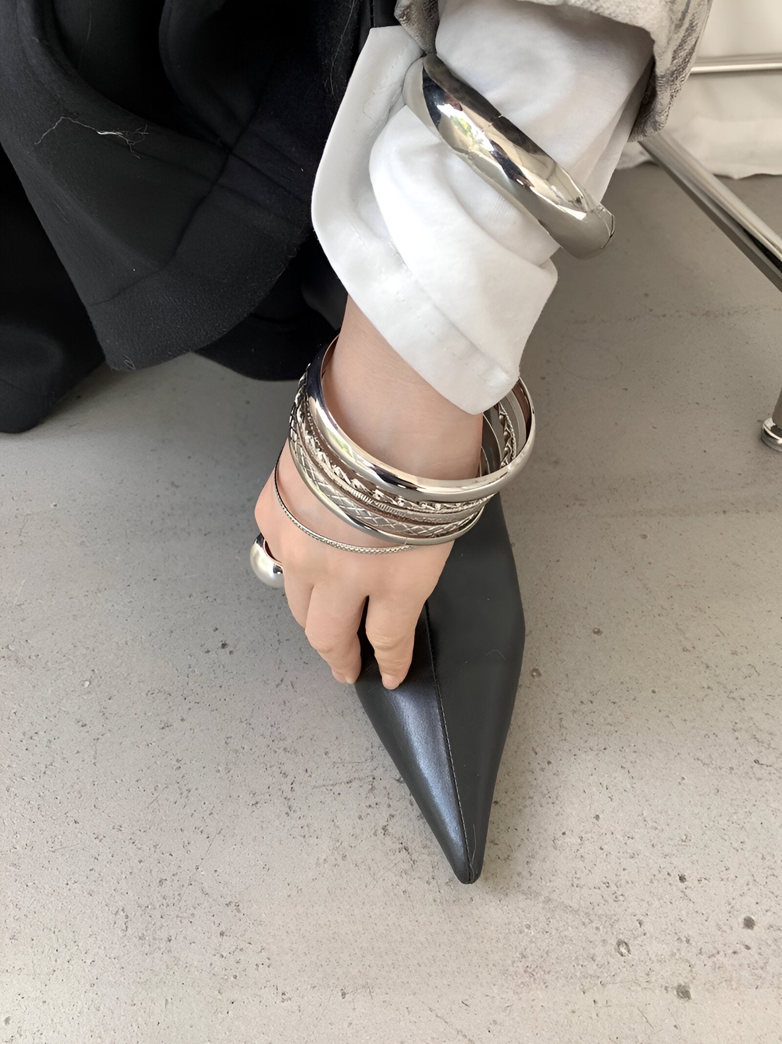 This minimalistic futuristic bracelet blends Y2K, indie sleaze, and Copenhagen style aesthetics with a bold yet refined edge. Designed with a high-shine metallic finish and sculptural structure, this stackable bracelet adds a touch of 2013 Tumblr-era fashion while staying effortlessly modern. Perfect for layering with textured knits or sleek monochrome looks, this piece complements both grunge and avant-garde outfits. Whether styled for a streetwear ensemble or a runway-inspired Copenhagen aesthetic, this bracelet is a must-have for those who love statement accessories.