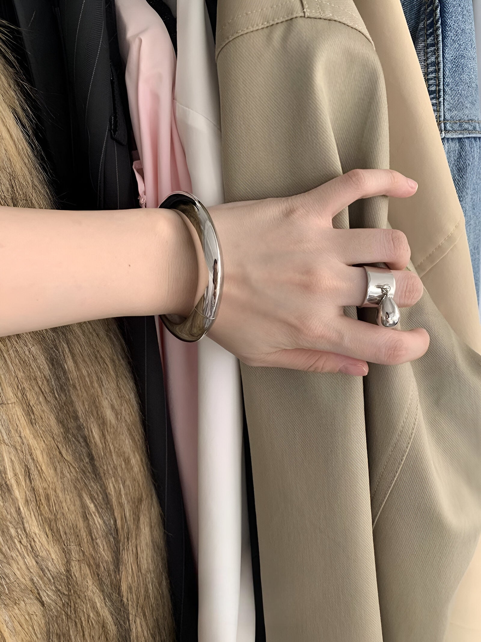 This minimalistic futuristic bracelet embodies the essence of Y2K, cybercore, and modern avant-garde fashion. Featuring a bold, sculptural design with a sleek high-shine finish, this piece effortlessly merges industrial aesthetics with timeless elegance. The adjustable cuff structure makes it easy to wear and stack with other accessories, allowing for endless styling possibilities. Inspired by futuristic, high-fashion, and contemporary techwear trends, this bracelet is a must-have for those who love statement jewelry with a cutting-edge appeal.